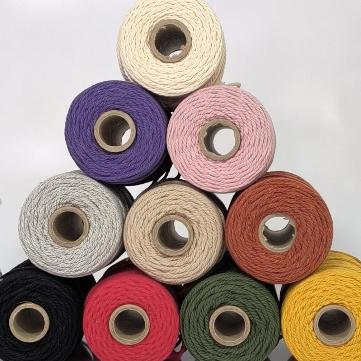 3 mm 3 bükümlü Makrome ipi. Duvar süsü, çanta, paspas, avize, abajur, runner, supla gibi birçok makrome modellerinizde kullanabilirsiniz. Örerken katları ayrılmaz, taranabilir. Kaliteli pamuk ile üretilmştir.