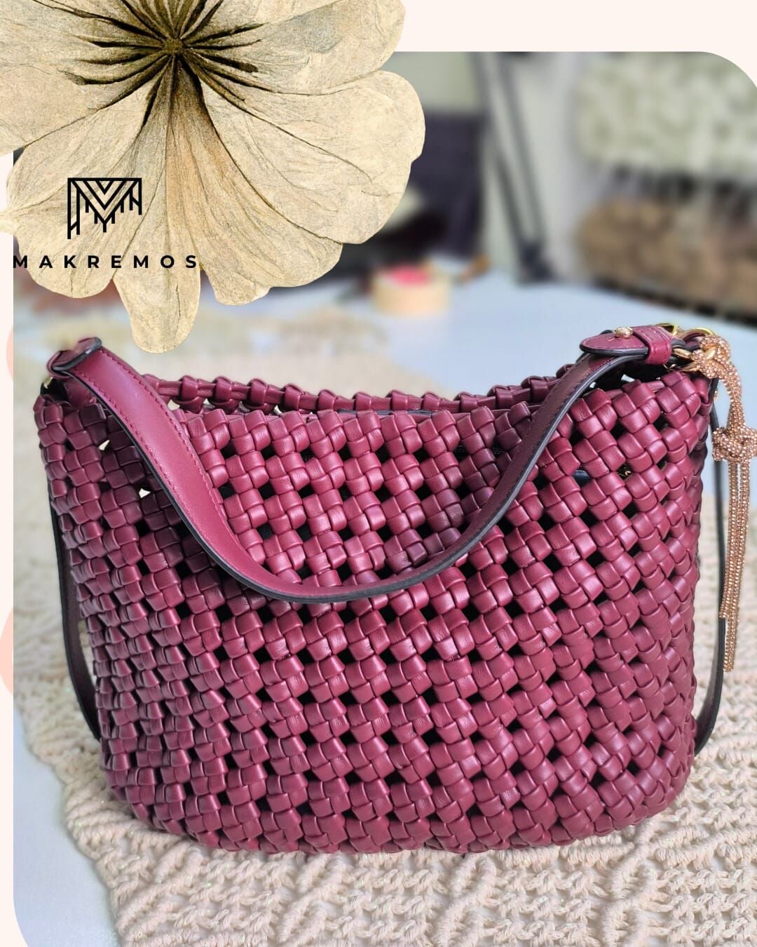 Hera çantamız 7 mm şerit deri iplerimizle çin düğümü ile yapılmış bir çantadır.